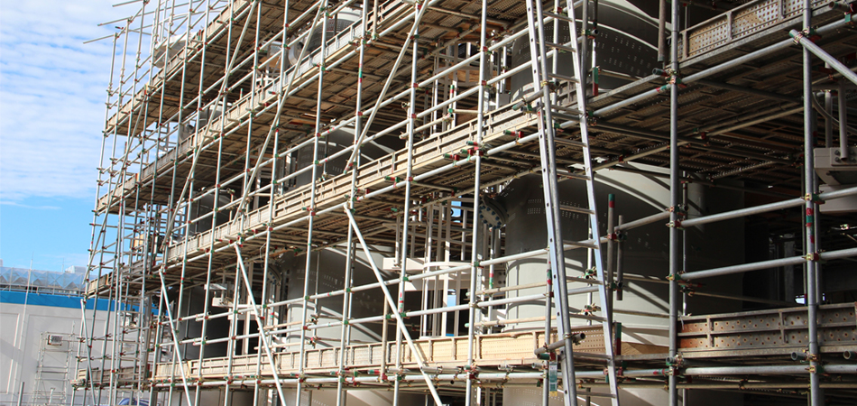 Sistem tradisional scaffolding berbasis pipa galvanis dengan kopling. Cocok untuk fleksibilitas tinggi di medan konstruksi yang kompleks.